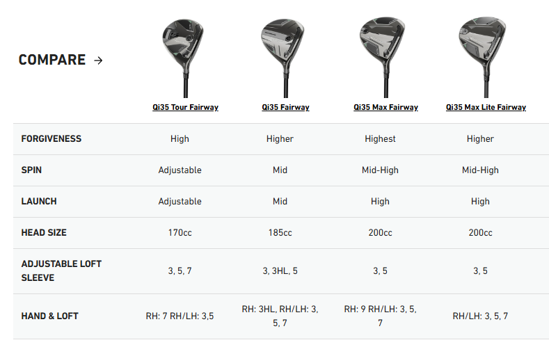 PREMIUM MULTIMATERIAL CONSTRUCTION Qi35 Fairway Woods are made from the premium lightweight chromium carbon, steel and aluminum to deliver consistent performance from any lie.